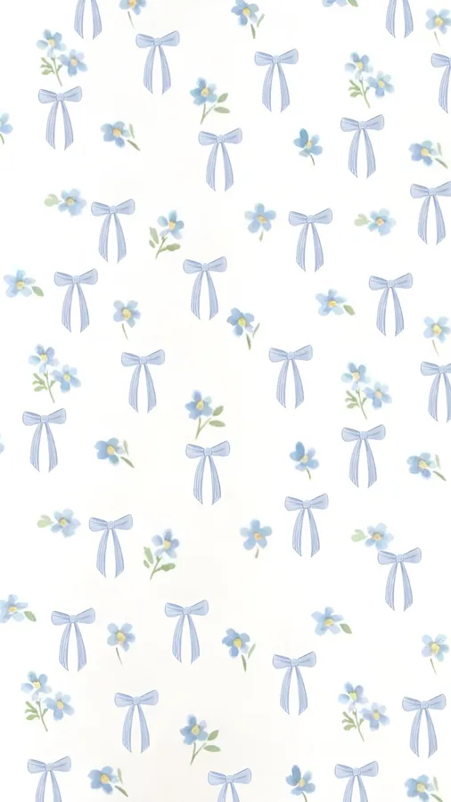 Related Blue Bow And Flower Pattern Wallpaper