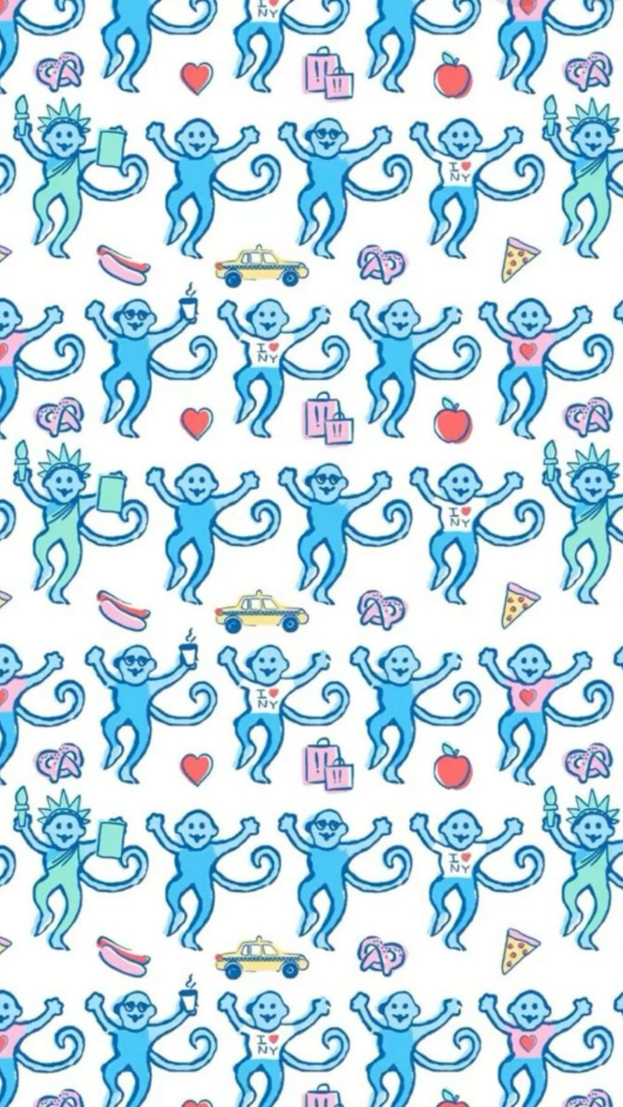 Related Blue Monkey Pattern Preppy Roller Rabbit Wallpaper
