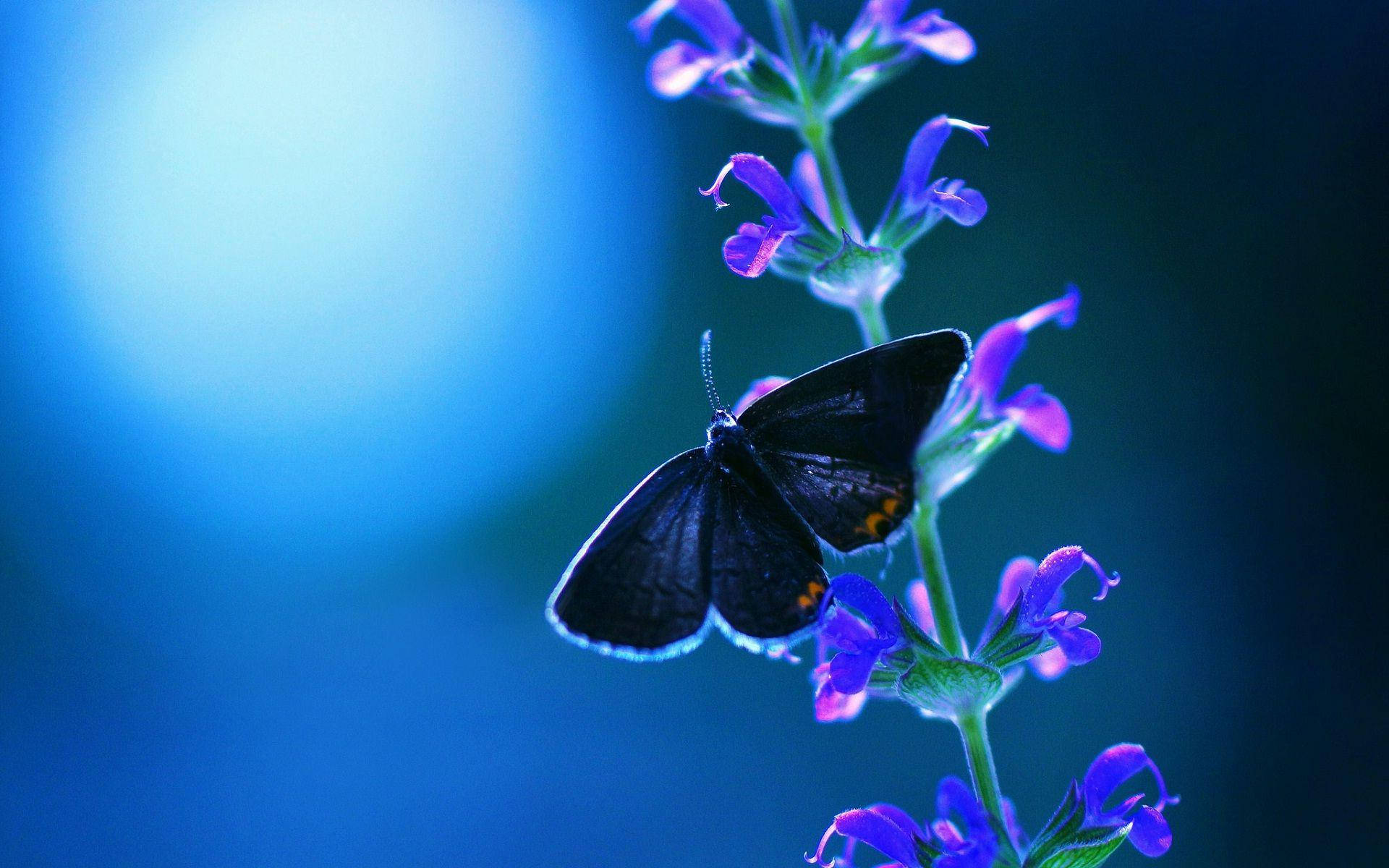 Related Blue Night And Purple Wildflower Butterfly Wallpaper
