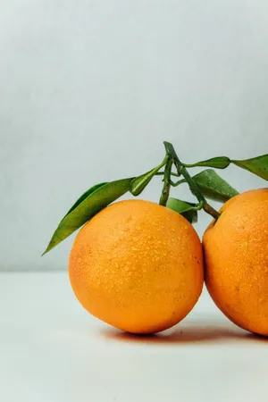 Cute Orange With Stems And A Leaf Wallpaper -