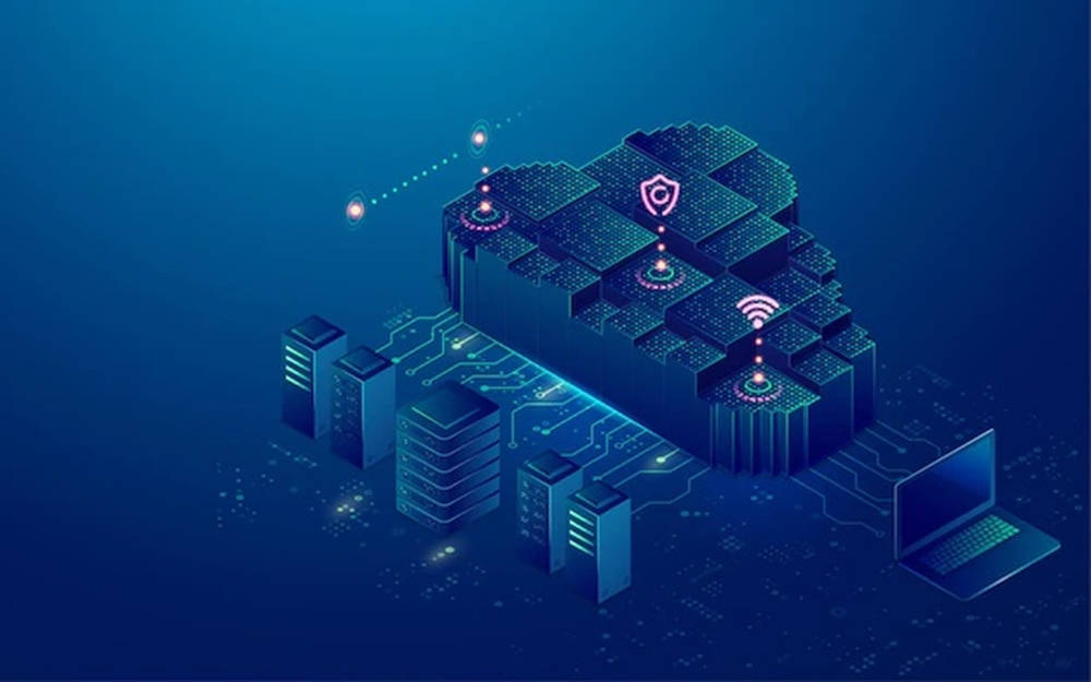 Futuristic Blue Cloud Storage Digital Art Wallpaper -