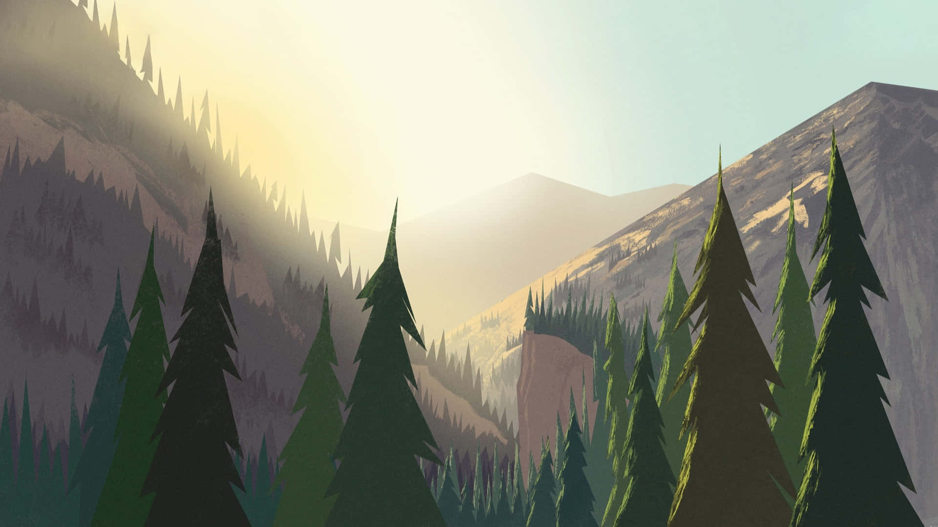 Cartoon Mountain Sunrise Wallpaper