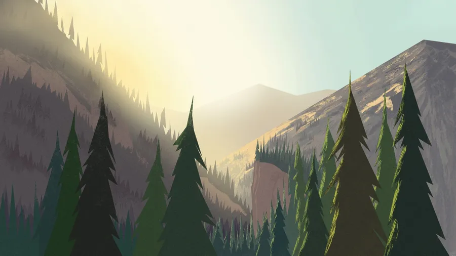 Cartoon Mountain Landscape Wallpaper -