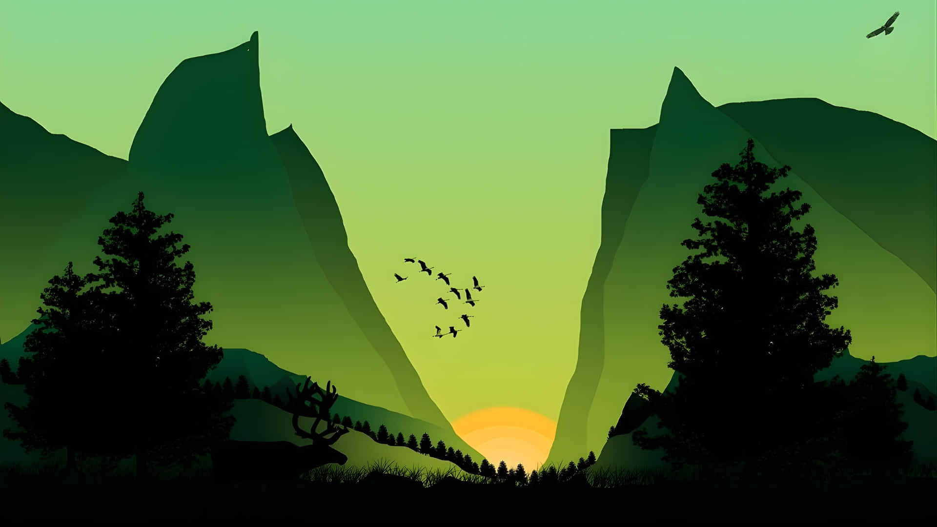 Cartoon Mountain Sunset Scene Wallpaper