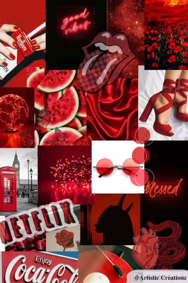 A Collage Of Red Images With A Red Background Wallpaper -