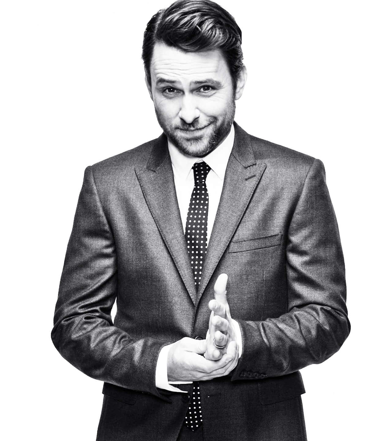 Award-winning Actor Charlie Day In A Stylistic Monochrome Portrait. Wallpaper -