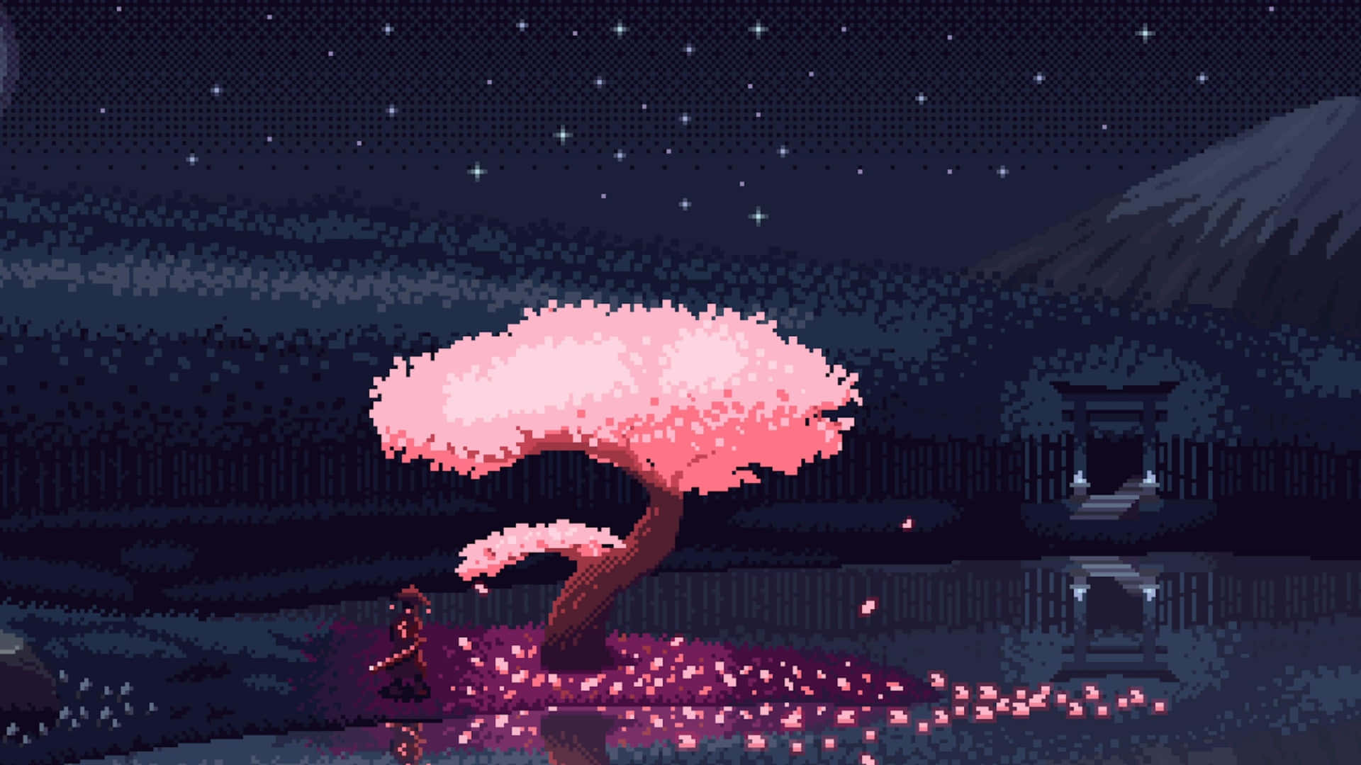 Anime Pixel Art Night Scene Wallpaper -