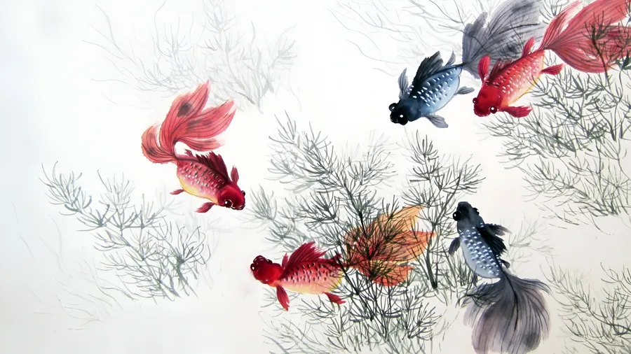 Chinese Watercolor Koi Fish Wallpaper