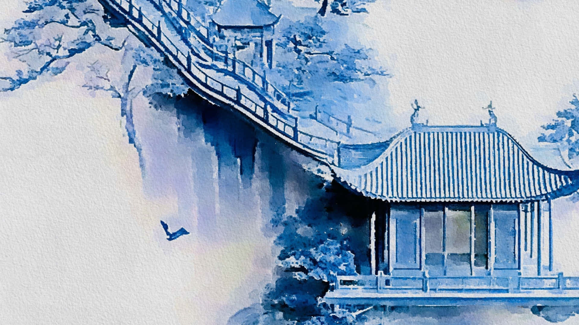 Chinese Watercolor Landscape Art Wallpaper