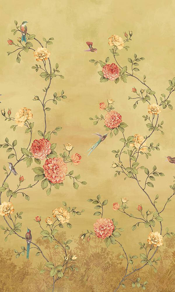 Chinoiserie Gold Background Wallpaper