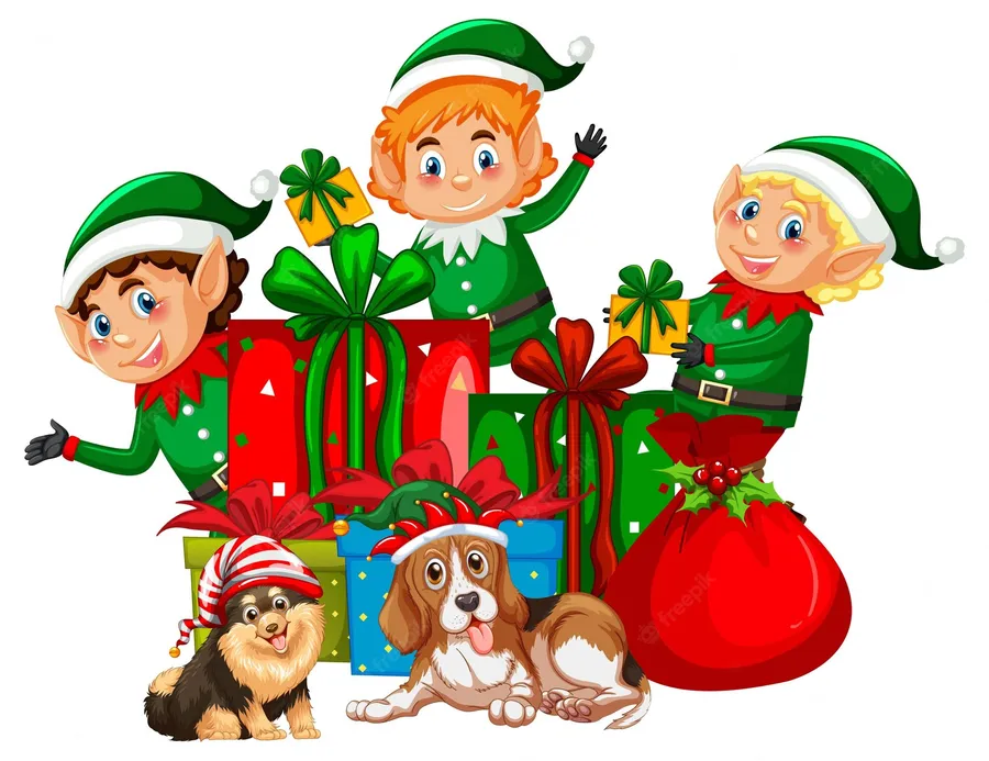 Christmas Elf With Dogs Wallpaper