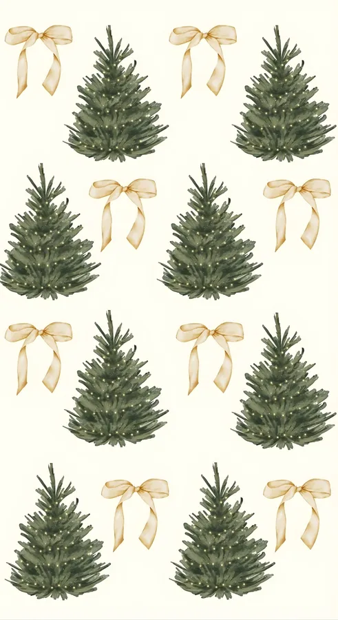 Christmas Tree And Bow Pattern Wallpaper