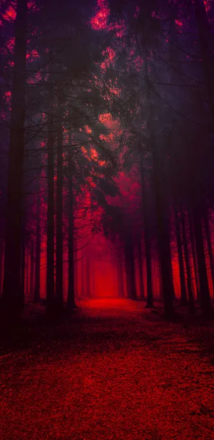 Take A Walk Through The Glowing Red Forest Wallpaper