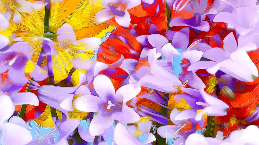 Related Colorful Spring Flowers Digital Drawing Wallpaper