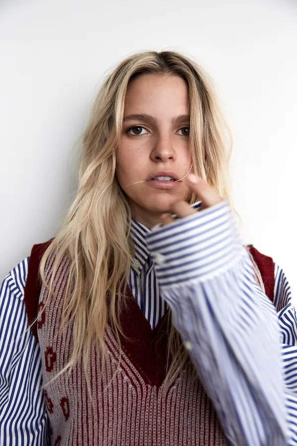 Related Contemplative Blonde Woman Chewing Glasses Wallpaper