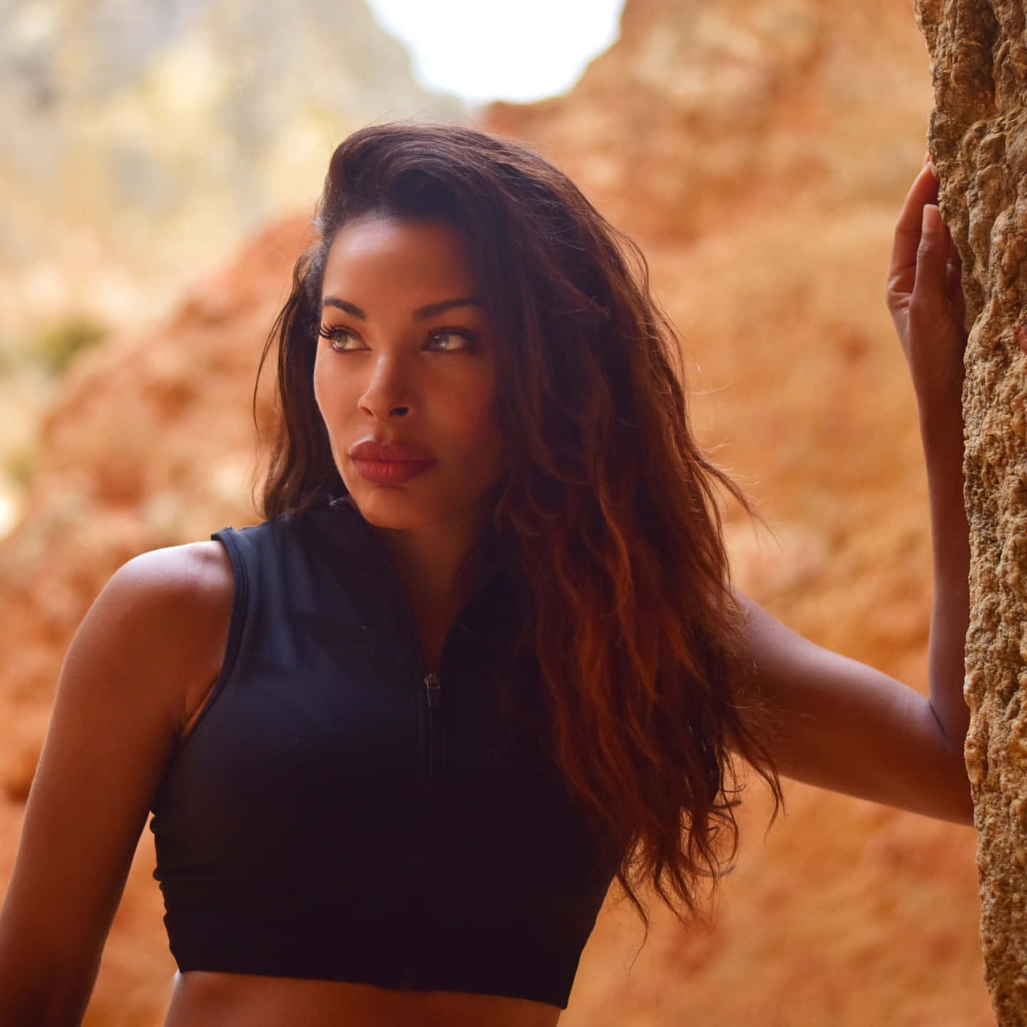 Contemplative Woman In Canyon Wallpaper