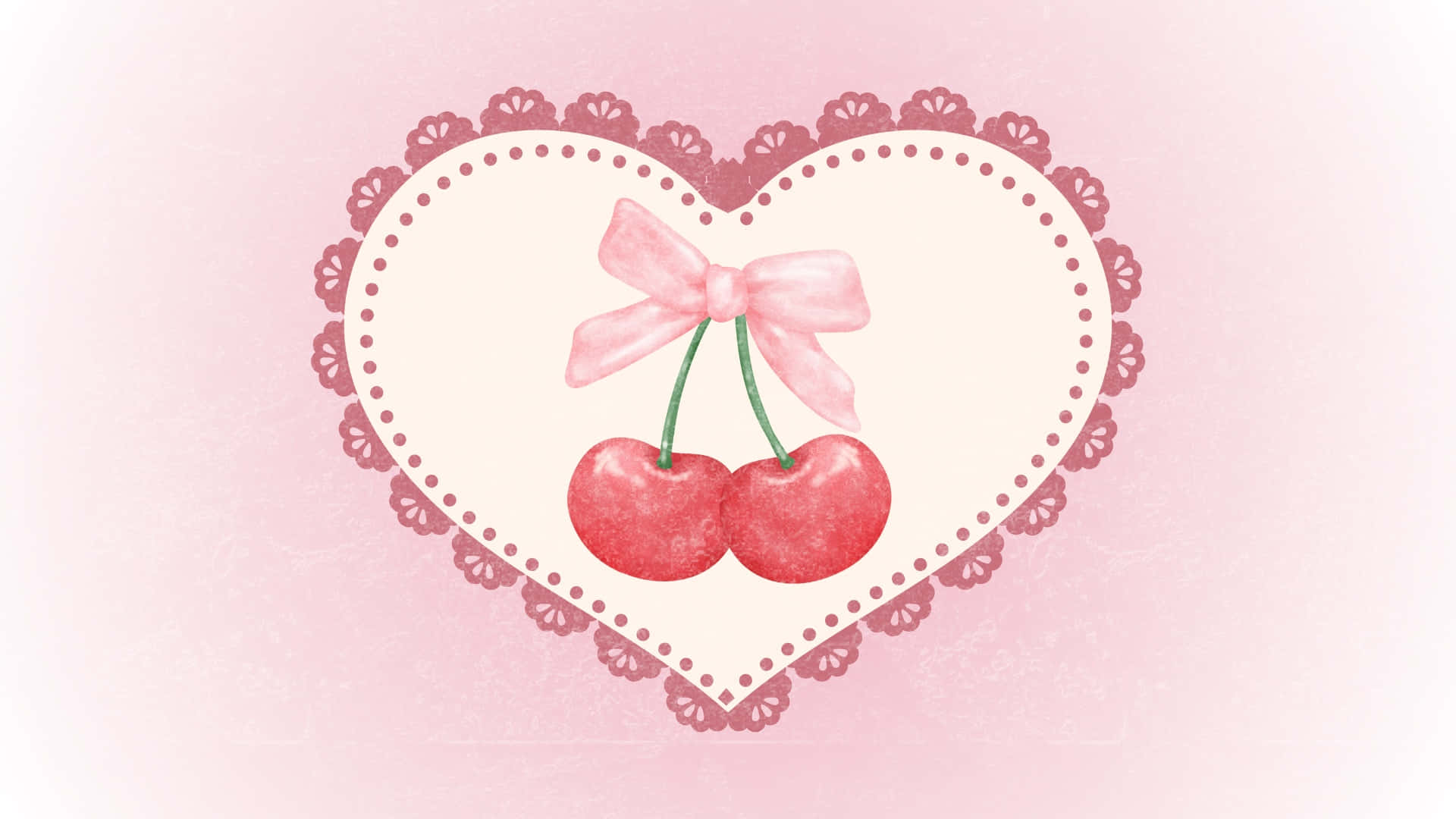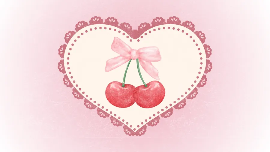 Coquette Cherry Heart Design Wallpaper