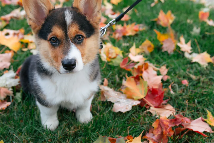 Corgi Autumn Leaves Grass -