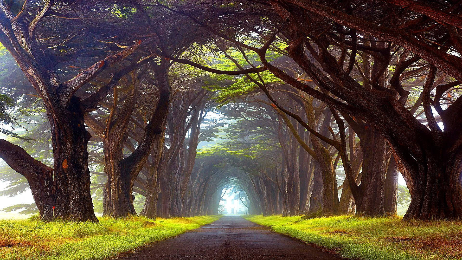 Country Road Shaded By Trees Wallpaper