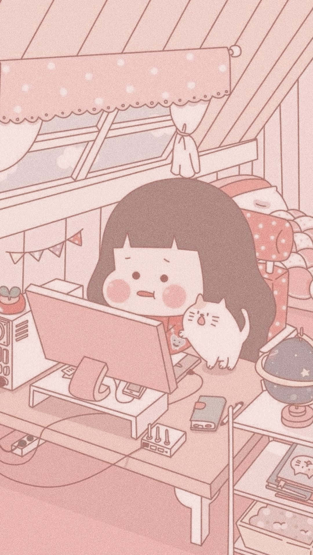 Cute Chibi Korean Anime Girl Working Wallpaper