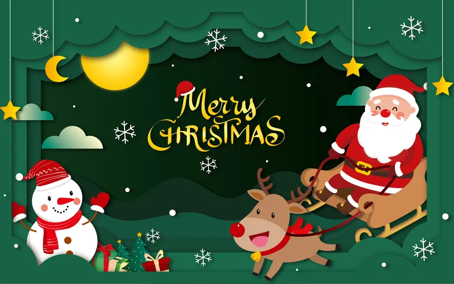 Cute Merry Christmas Green Art Wallpaper