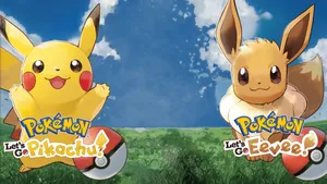 "cute Pikachu And Eevee Team Up For A Walk In The Park" Wallpaper -