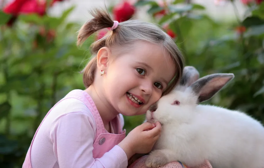 Cute Smile Girl And Rabbit Wallpaper