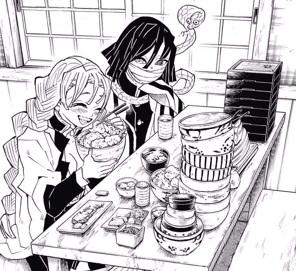 Related Demon_ Slayer_ Characters_ Enjoying_ Meal_ Manga_ Panel Wallpaper