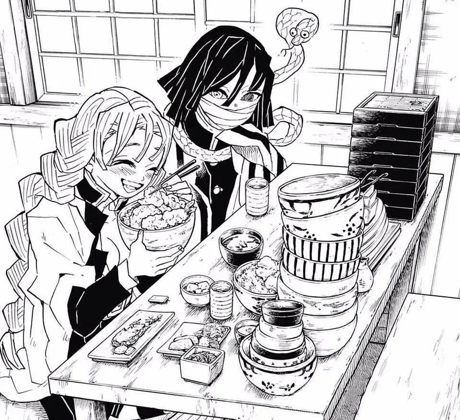 Demon_ Slayer_ Characters_ Enjoying_ Meal_ Manga_ Panel -