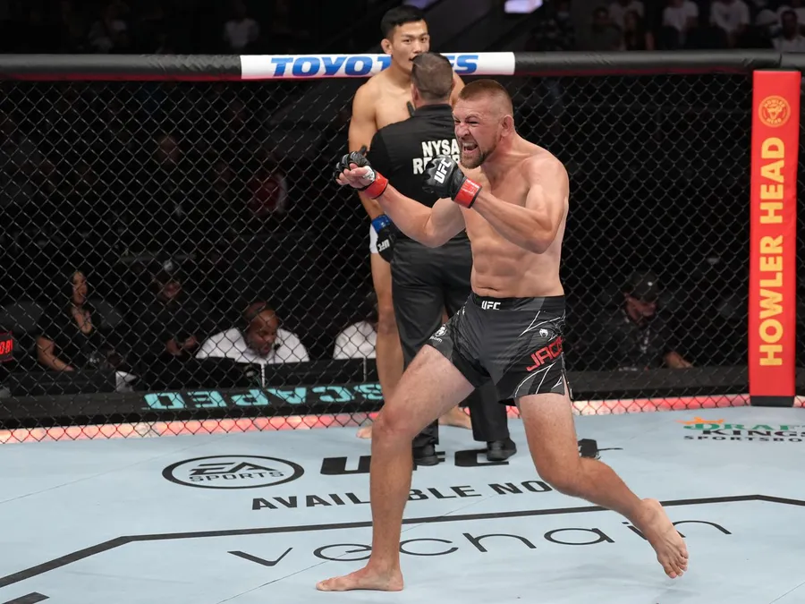 Dustin Jacoby In Action Against Michal Oleksiejczuk Wallpaper -