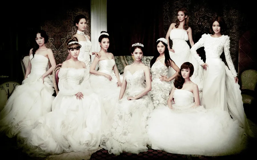 Elegant Bridal Gowns Group Portrait Wallpaper
