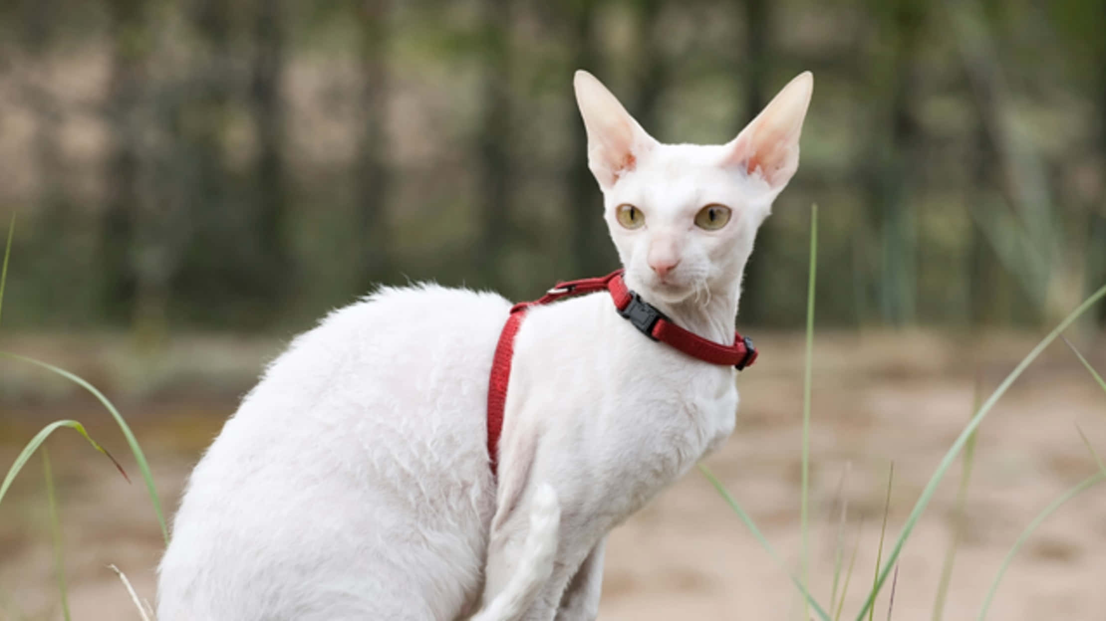 Elegant Cornish Rex Cat Relaxing On The Grass Wallpaper