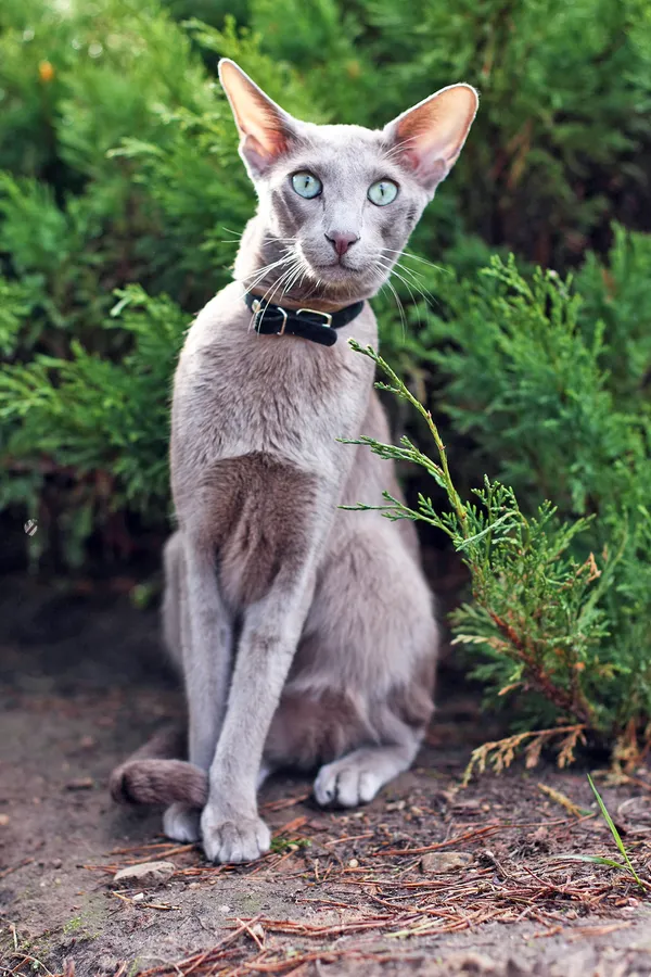 Elegant Oriental Shorthair Cat Posing In A Tranquil Environment Wallpaper