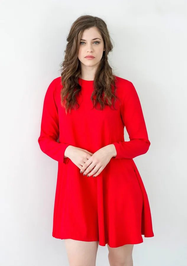 Elegant Red Dress Portrait Wallpaper