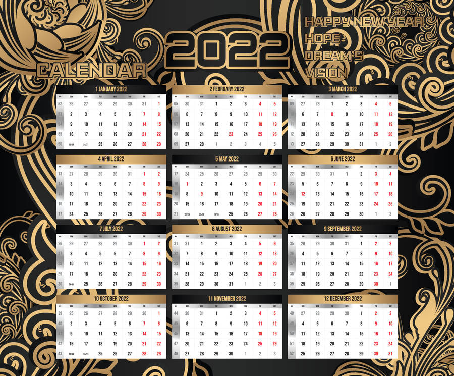 Golden 2022 Calendar Wallpaper -