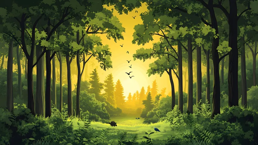 Cartoon Forest Sunset Scene Wallpaper -