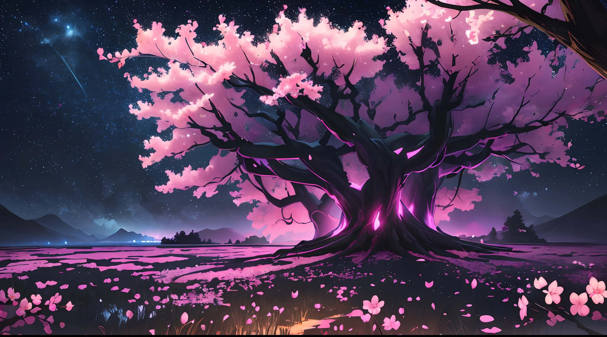 Enchanted Cherry Blossom Treeat Night Wallpaper