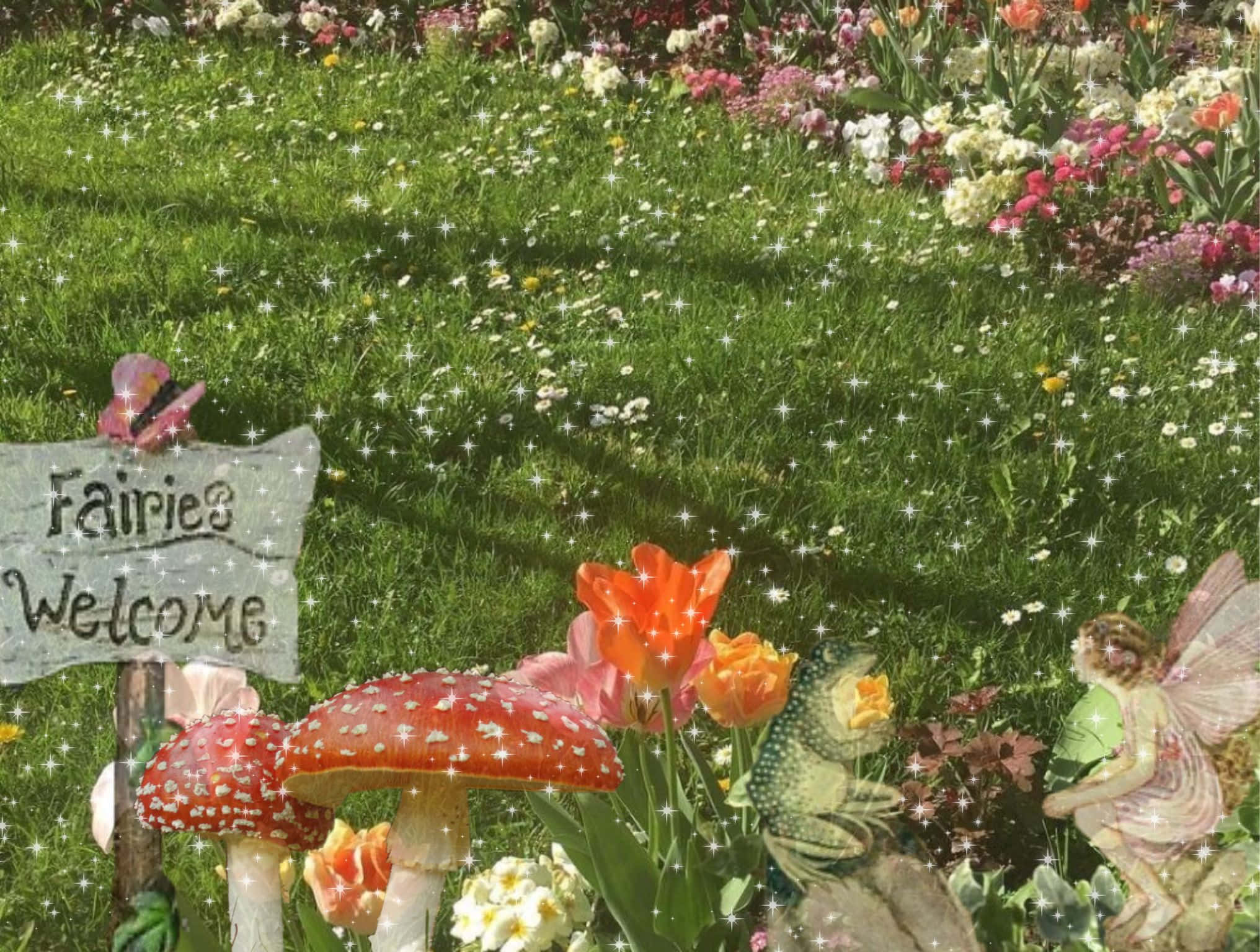 Fairycore Garden Welcome Sign Wallpaper