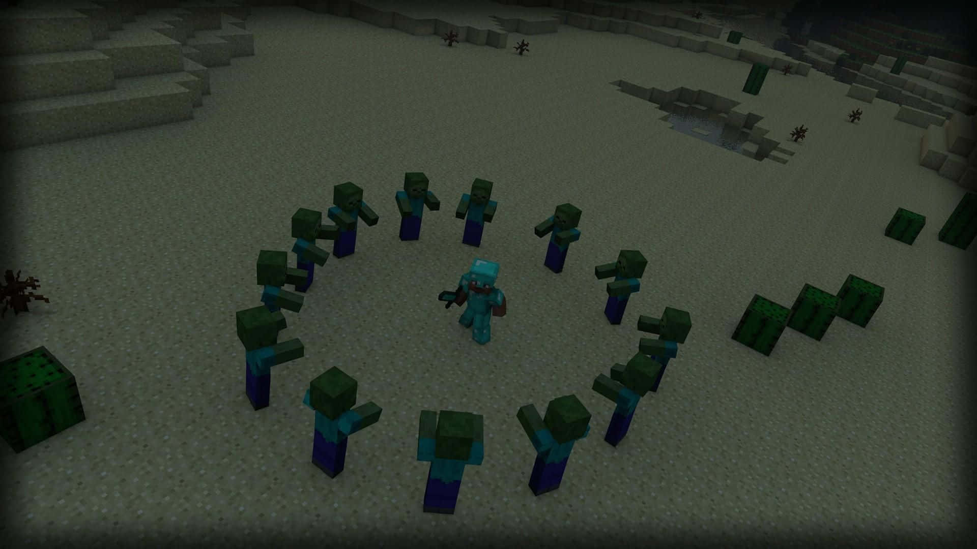 Thrilling Encounter With A Minecraft Zombie Wallpaper -