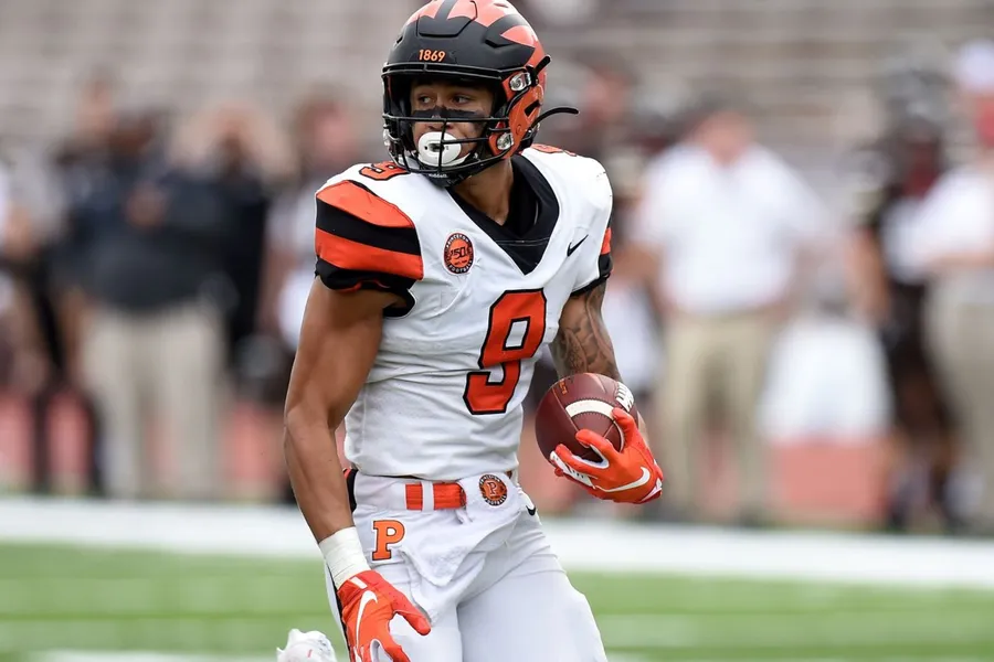 Athlete Catching Football During Drill Wallpaper -