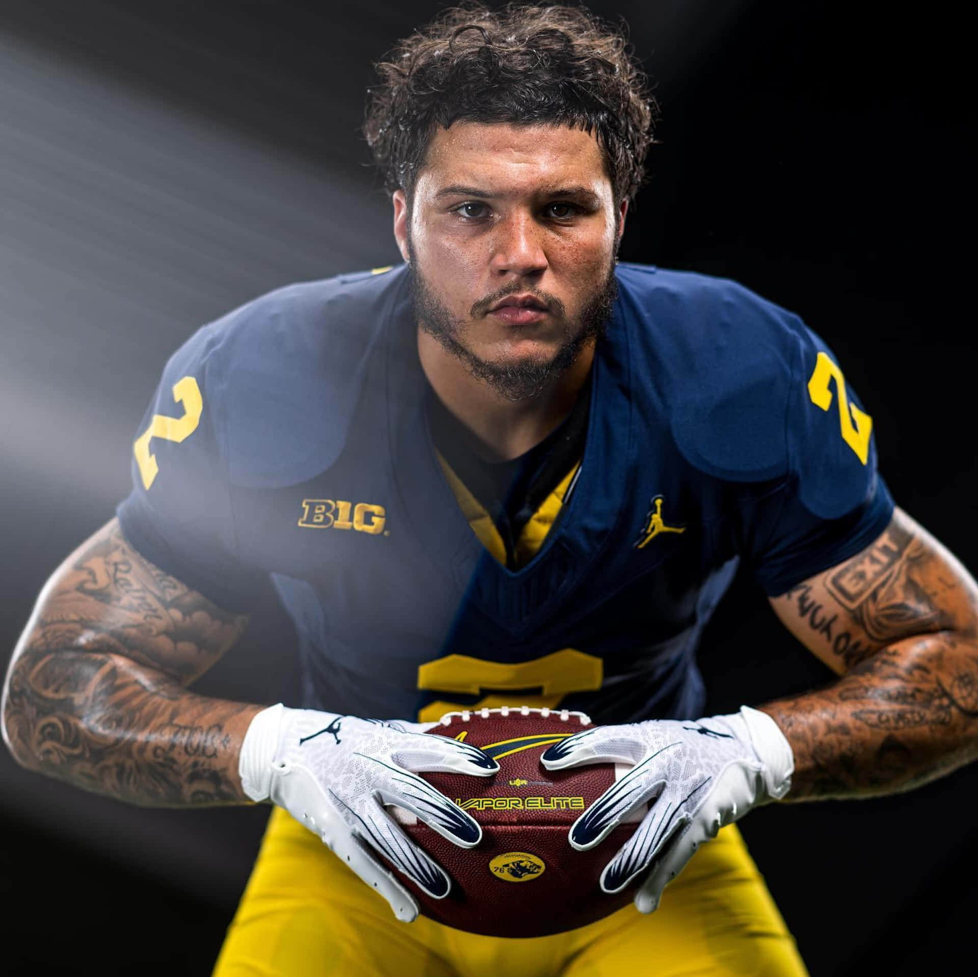 Focused Football Player Blake Corum Wallpaper -