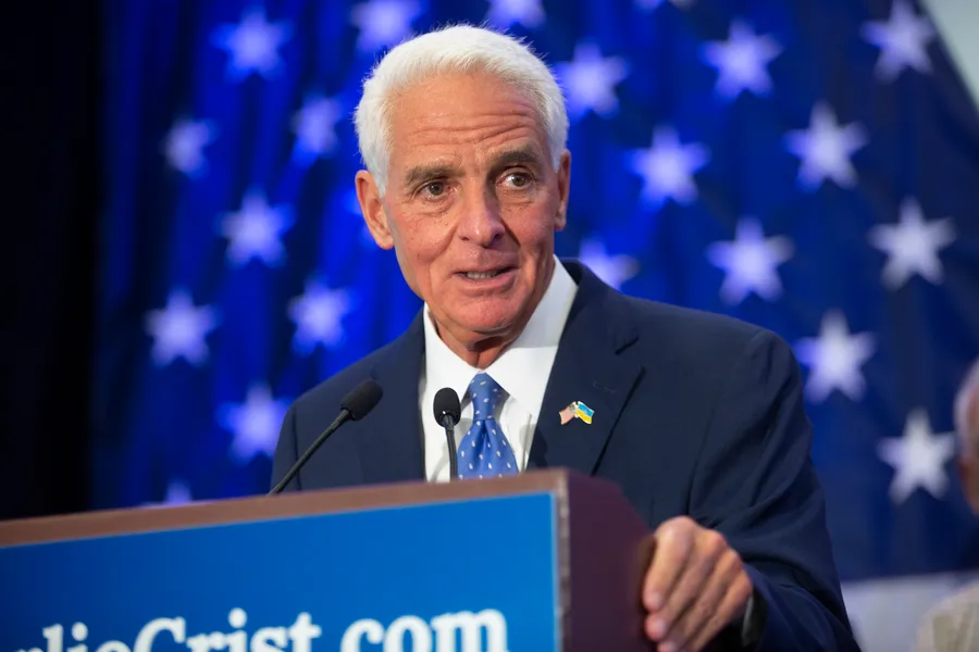 Former Florida Governor Charlie Crist Holding A Podium -