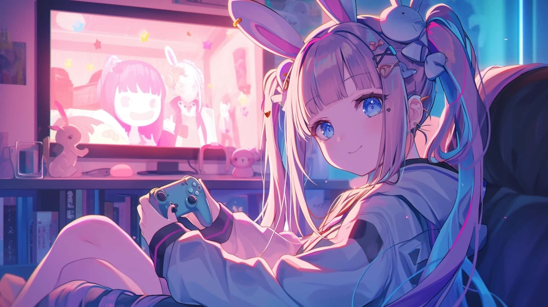 Pastel Gamer Girl Anime Artwork Wallpaper -