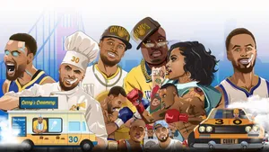 "stephen Curry Appearing As A Cartoon Character On Wallpaper" Wallpaper -