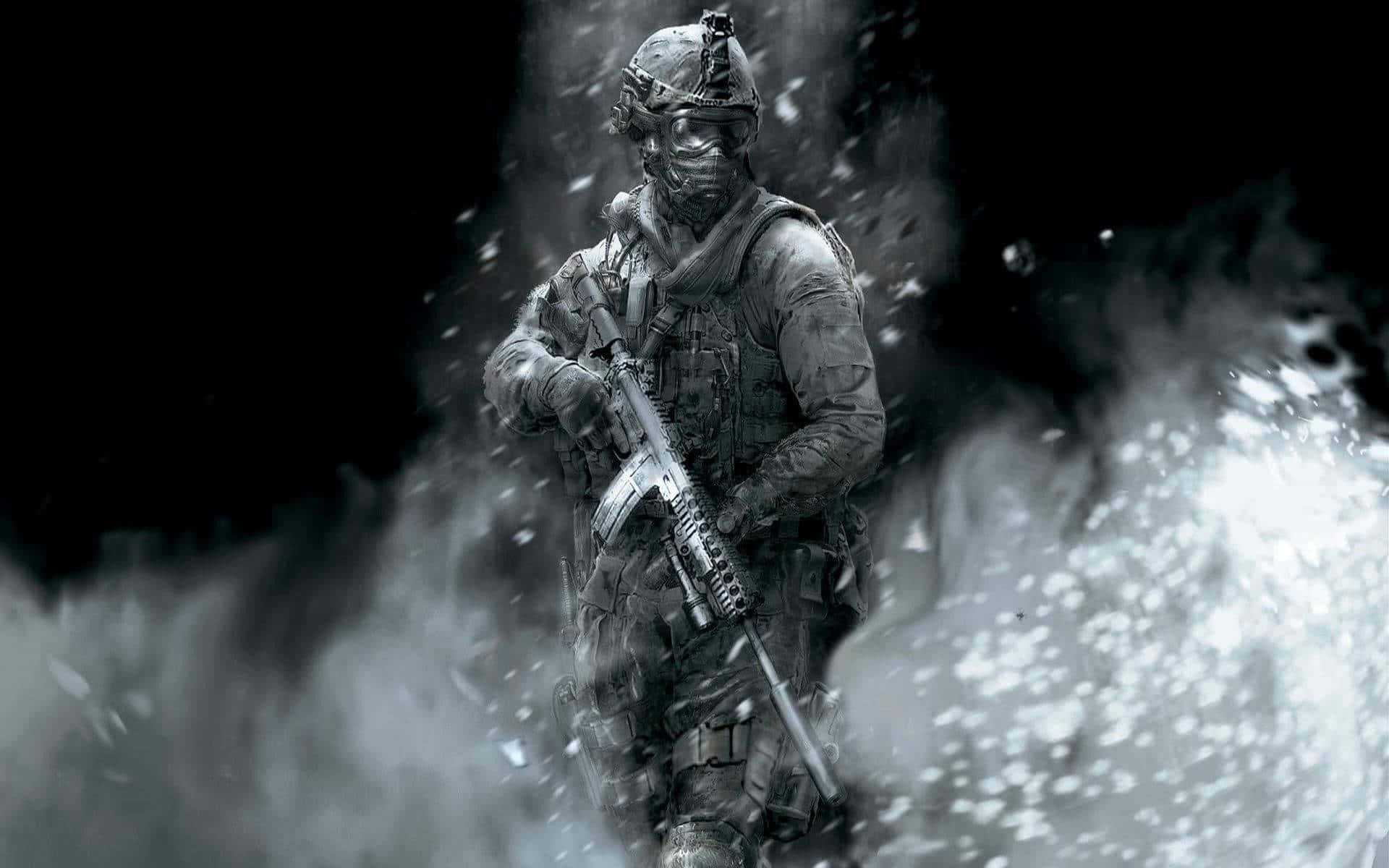 Skull Masked Soldier In Action Wallpaper -