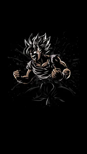 Powerful, Determined Goku In Black & White Wallpaper