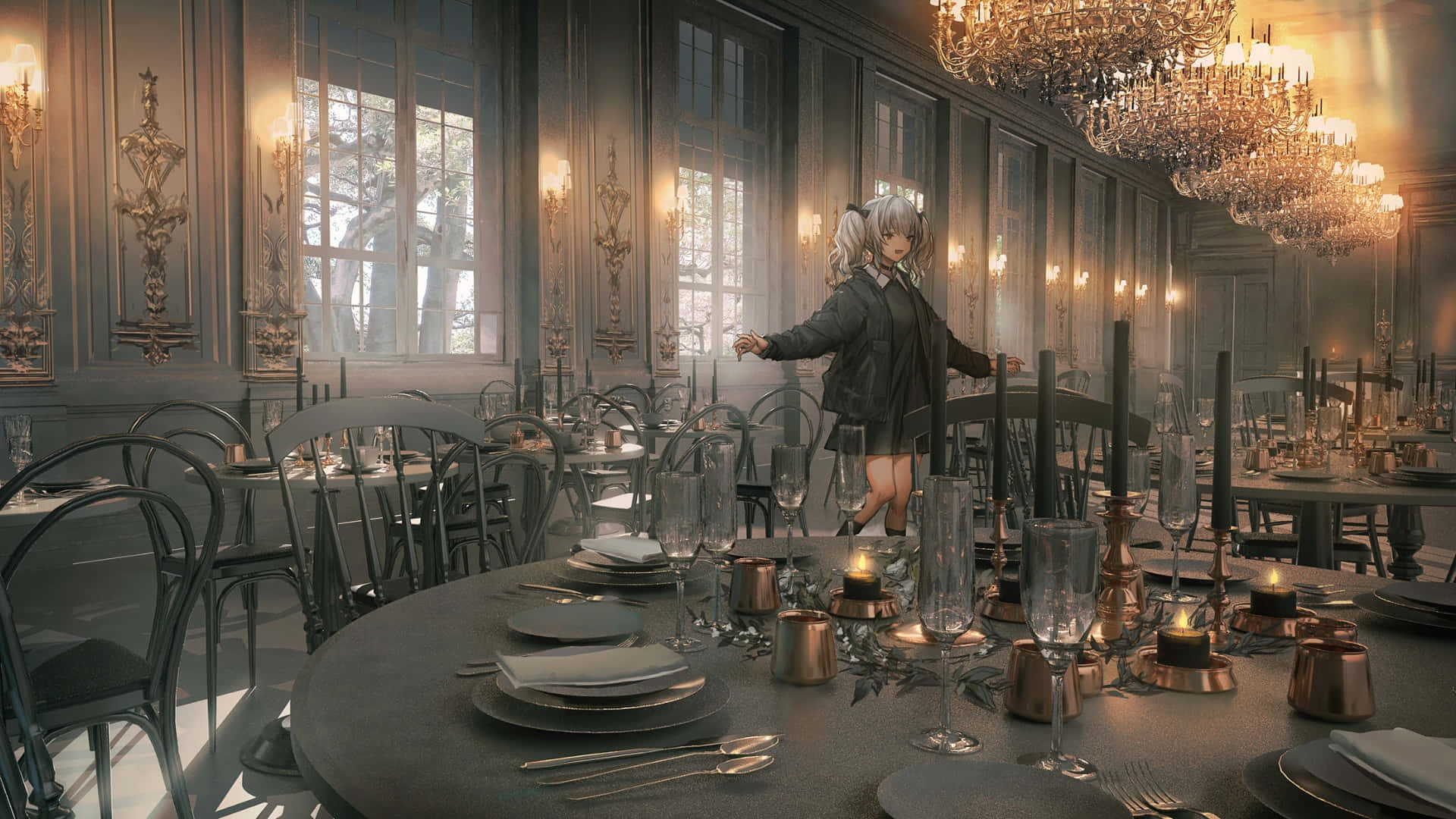 Goth Anime Girl In Elegant Room Wallpaper -