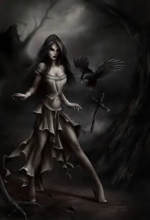 Gothic Fantasy Woman In Graveyard Wallpaper -