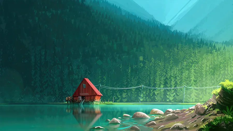 Forest Lake House Wallpaper -