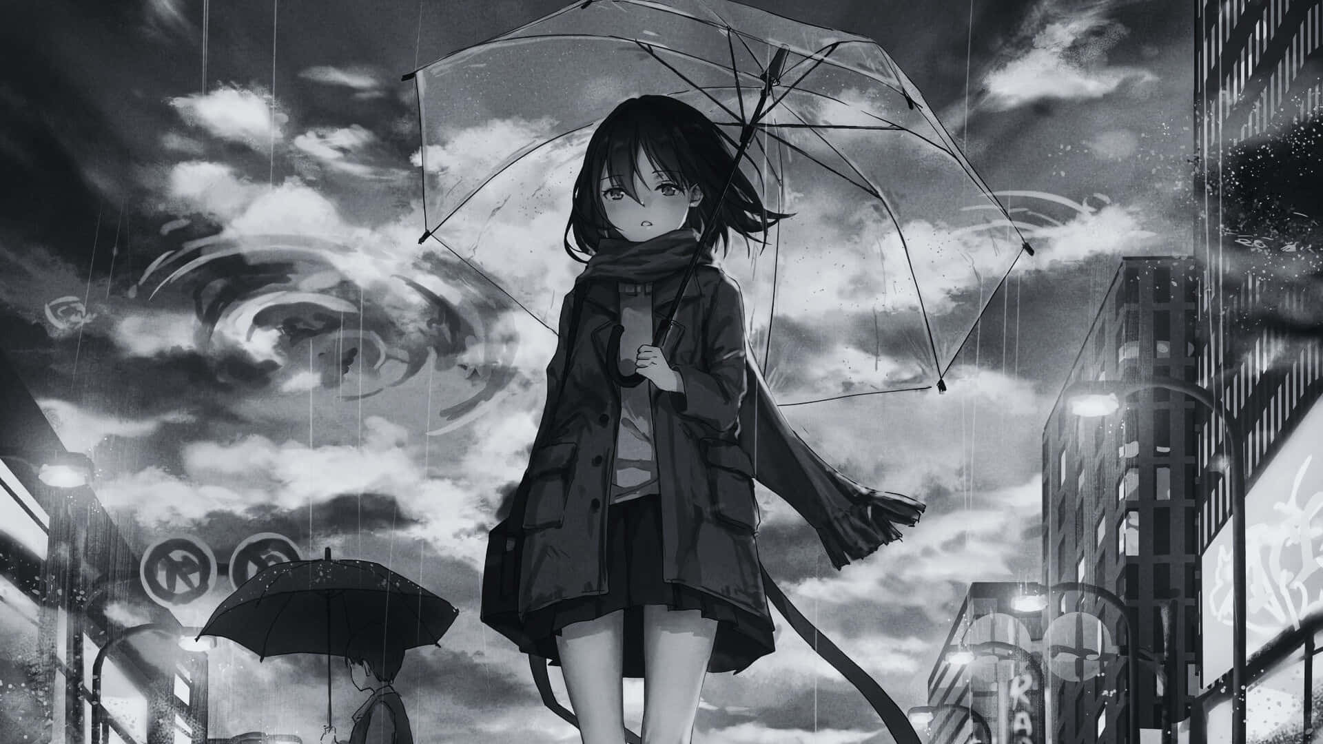 Grey Anime Girl Umbrella Wallpaper